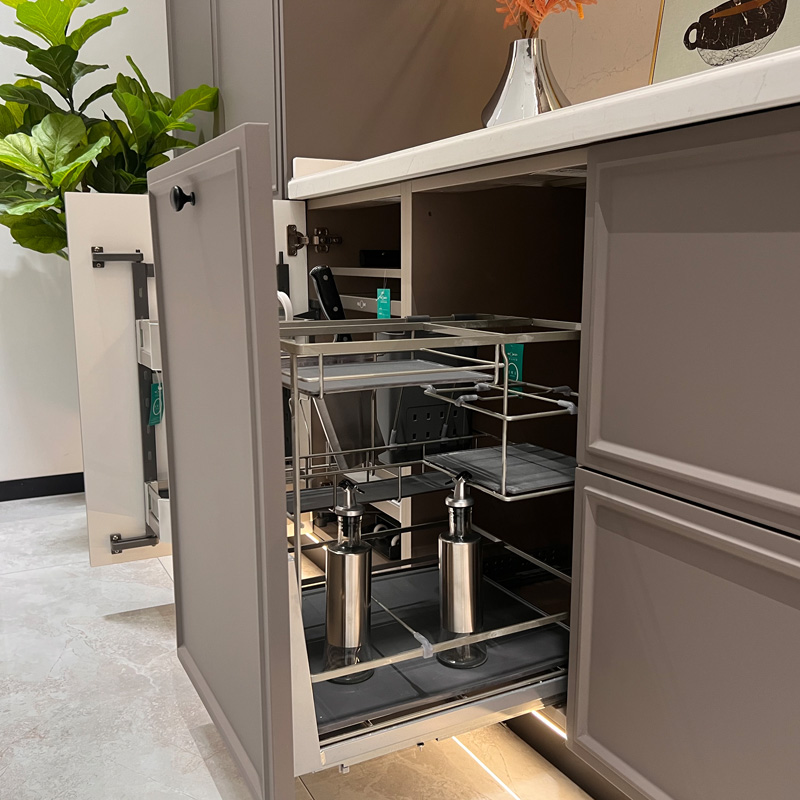Funktionel hardware kan vælges i henhold til dine skikke og livsstil. Opbevaringspladsen kan være stor med passende funktionelle hardwares, gør dit køkken altid rent og ryddeligt.