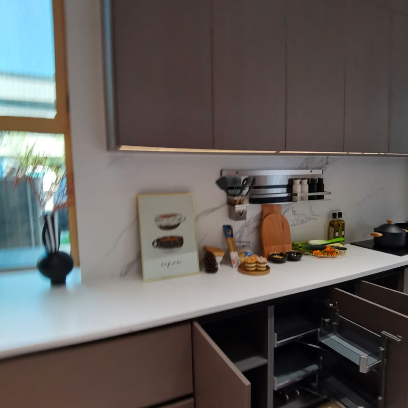 | Beskrivelse | Laminat UV lak køkkenskabe med moderne design |