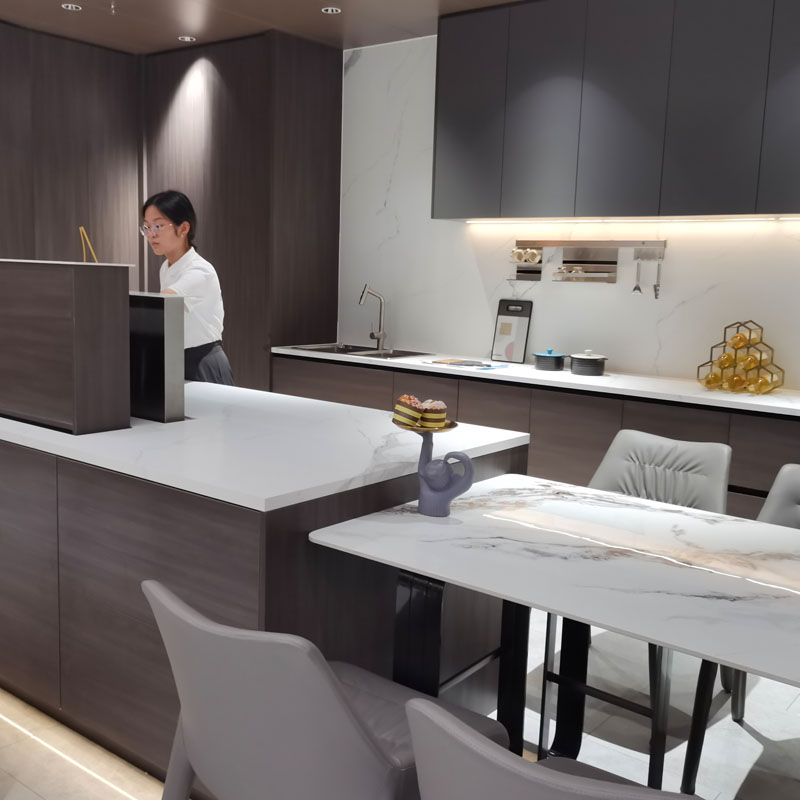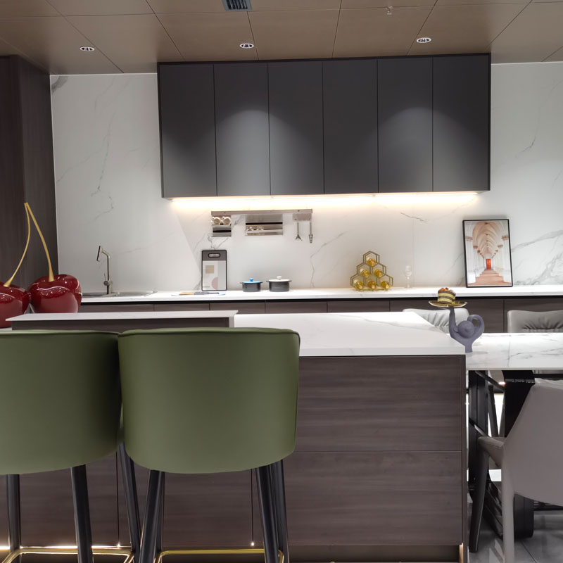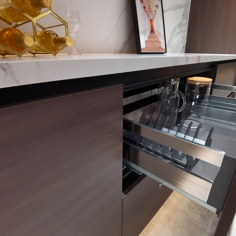 Qingdao Sinoya Co., Ltd. er glade for at give dig et køkkenskabe i lamineret træ, der matcher glas køkkenskabe. For at blive tilpasset er standard underskabsdybde 500-600 mm, og standard overskabe er 350-400 mm.