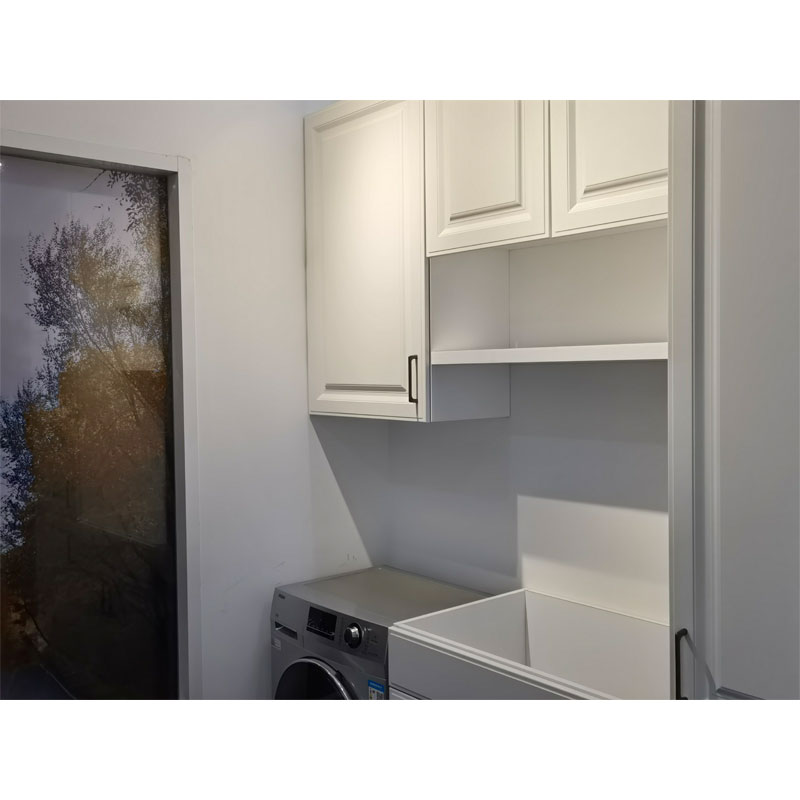 SINOAH lancerer et nyt sæt laminerede hvide vaskeskabe. De hvide skabe ser mere pæne og rene ud, og gør rummet visuelt rummeligt og lyst. De konkave og konvekse skabslåger og sorte metalhåndtag er meget stilfulde og elegante og ikke let ude af stil. Kombinationen af åbne hylder og lukkede skabe gør hele rummet mere forskudt.